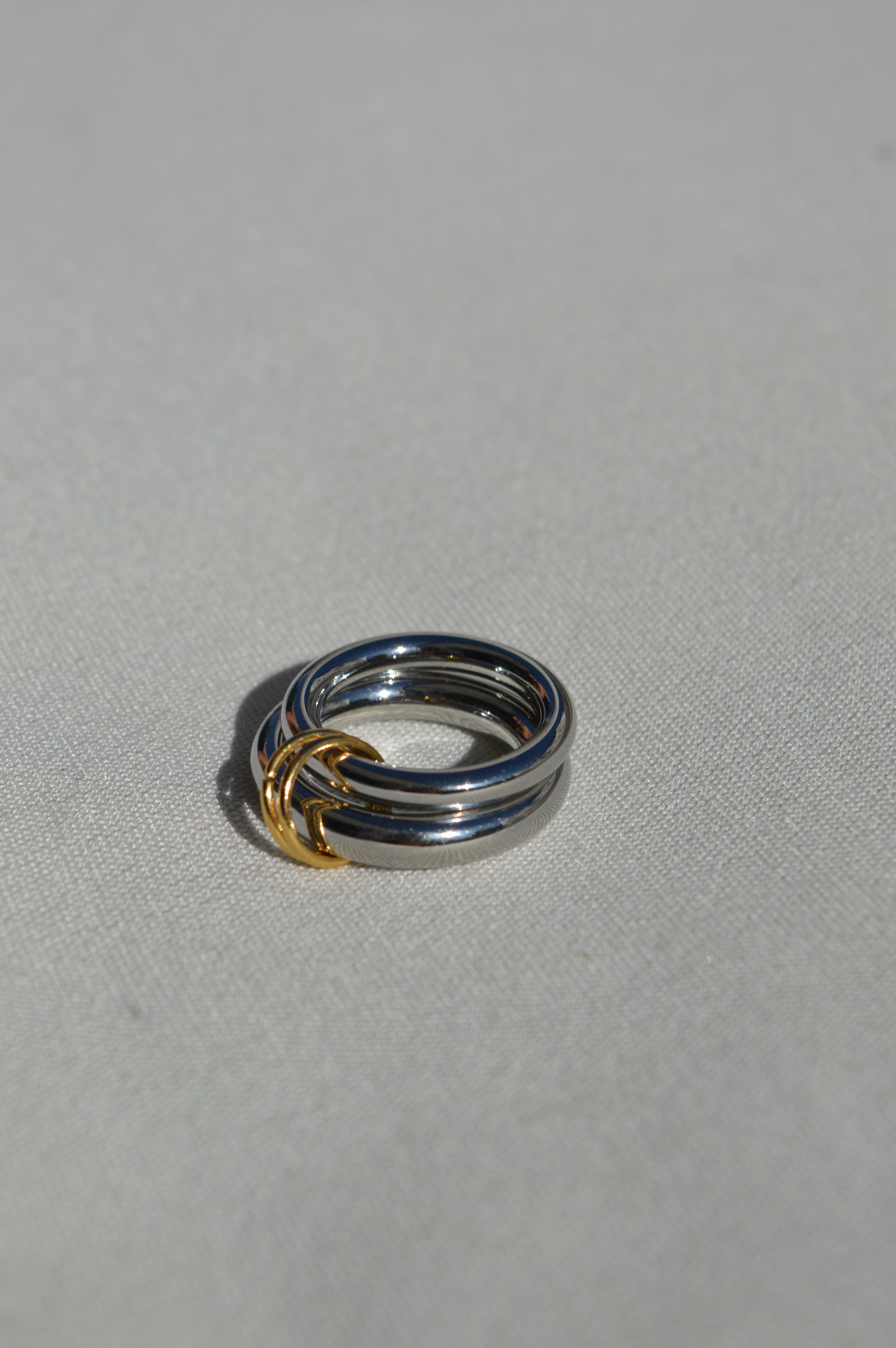 Zwei Ringe, ein Vibe: Unser Double-Ring mit goldenen Details ist das perfekte Piece für deinen minimalistischen Style. Mit seiner soften Silhouette und dem cleanen Design passt er zu allem, ob comfy Alltags fit oder chic Night-Out-Look.