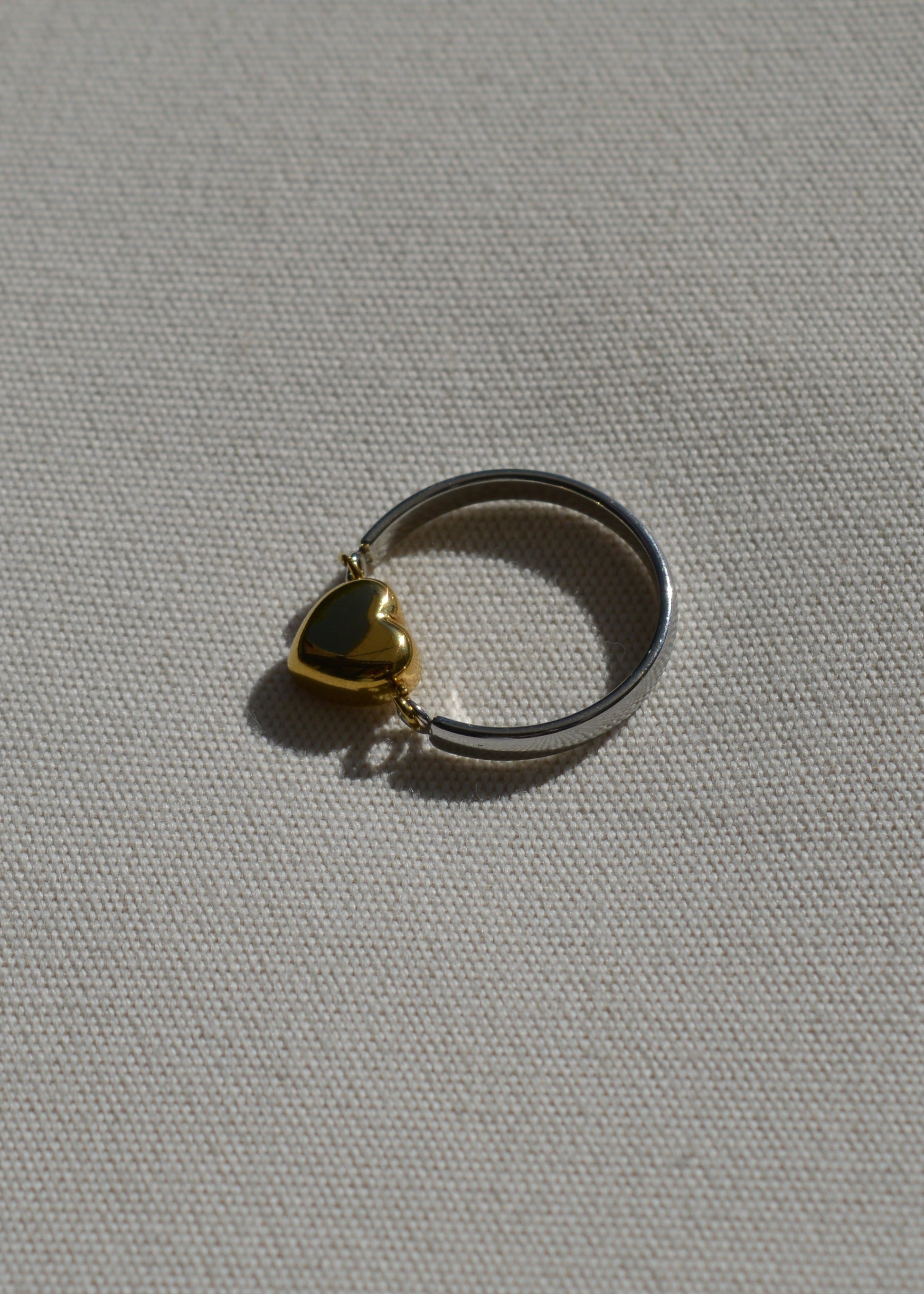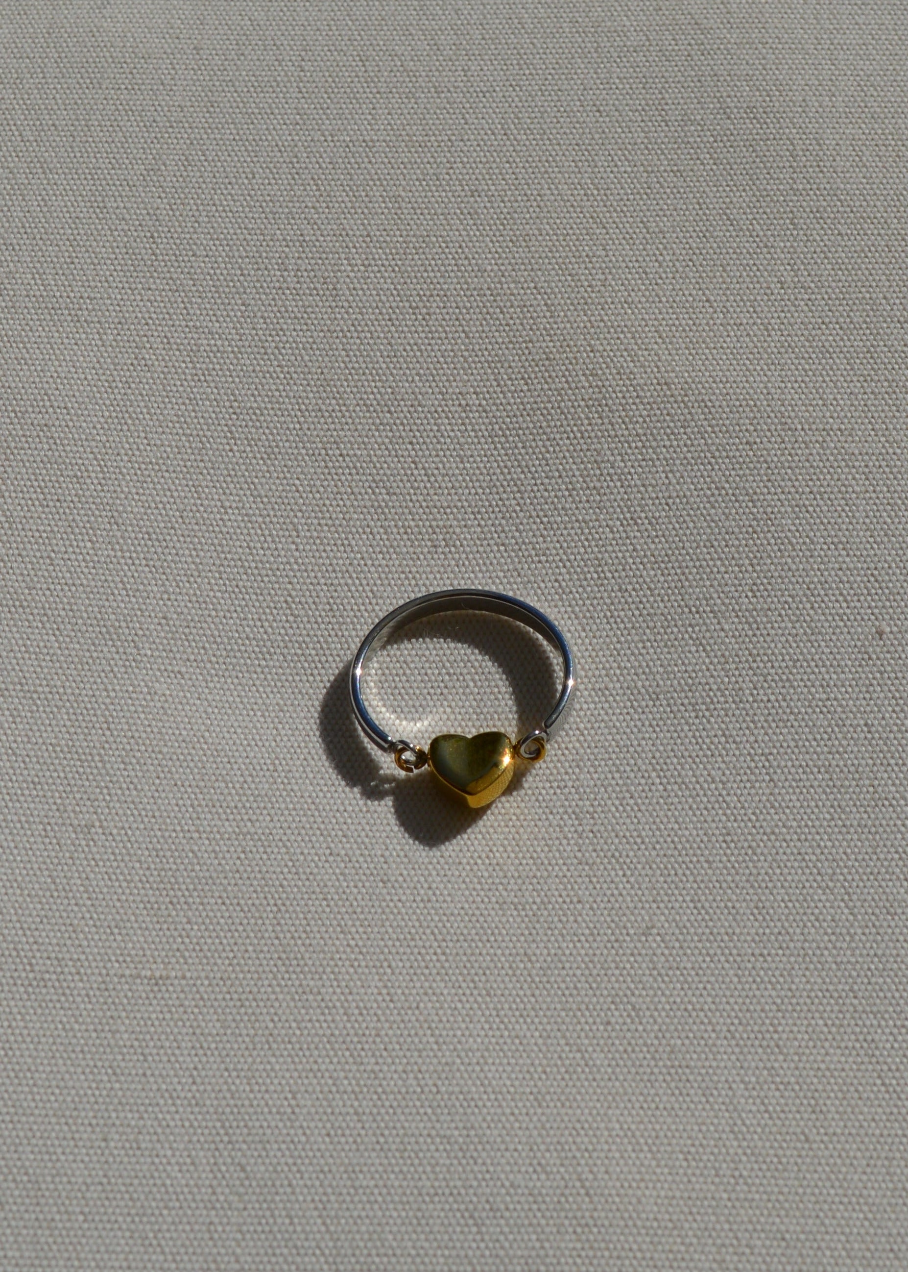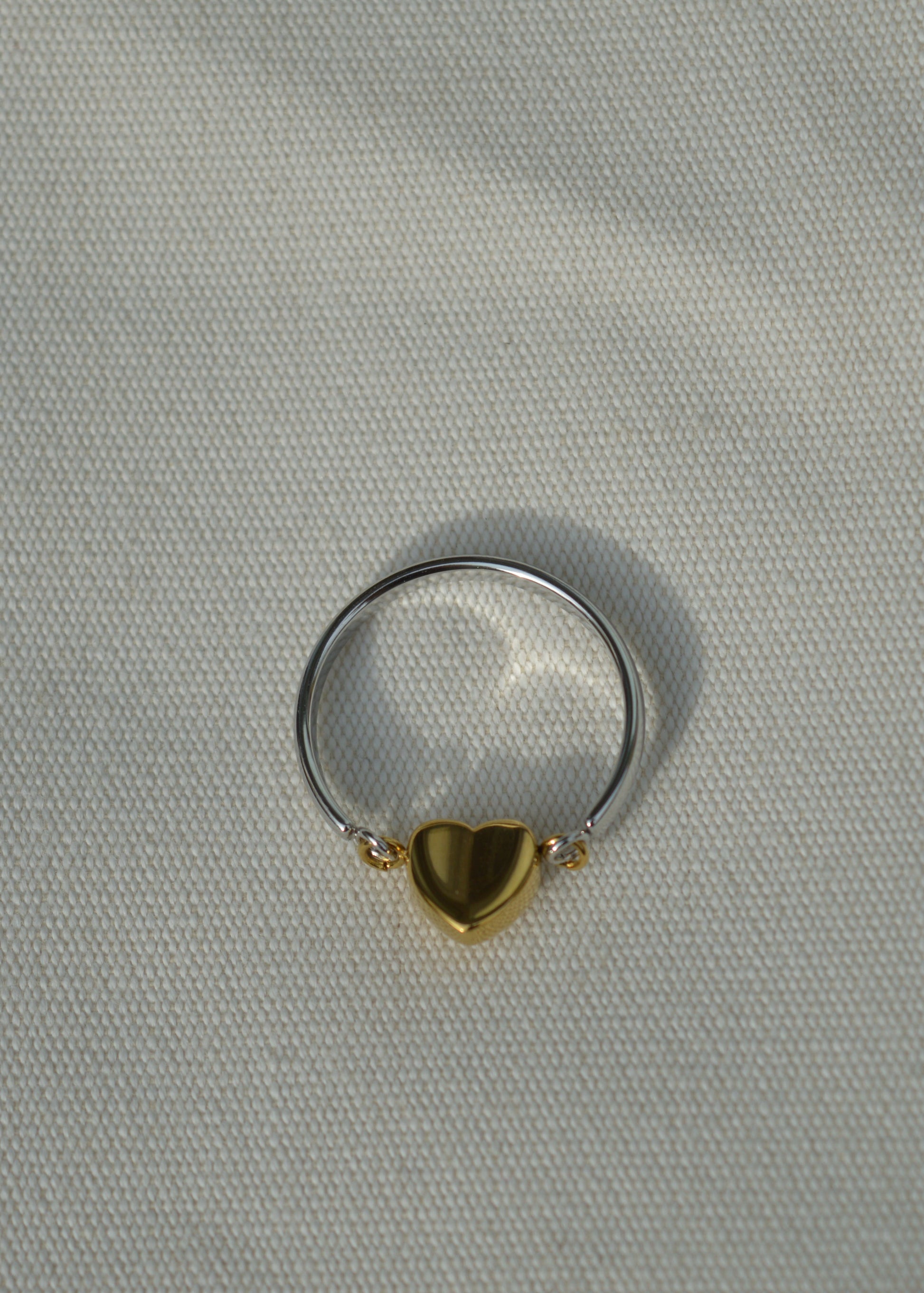 Der Lykke heart Ring vereint zwei Gegensätze in einem harmonischen Design: kühles Silber trifft auf warmes Gold. Das kleine Herz-Detail setzt einen sanften Akzent und macht den Ring zu einem besonderen Piece für alle, die schlichte Eleganz mit einem Hauch Playfulness lieben.