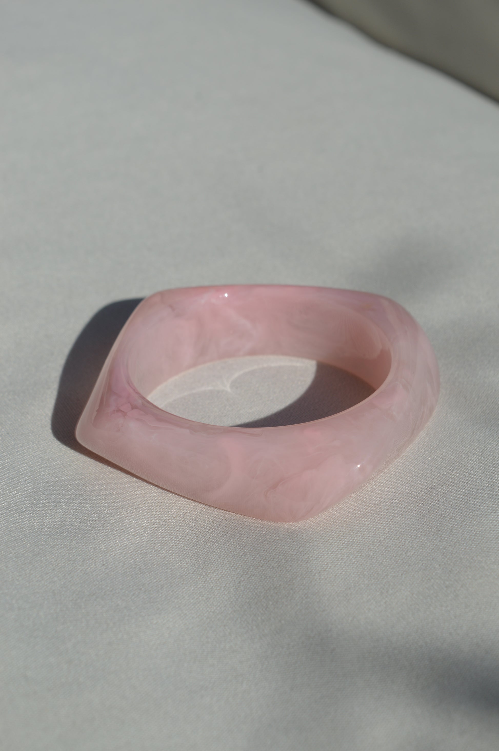 Das weiche Rosa trifft auf ein modernes, organisches Design – chunky, aber leicht zu tragen. Ob solo oder im Stack, dieser Armreifen macht jedes Outfit softer & stylisher.
